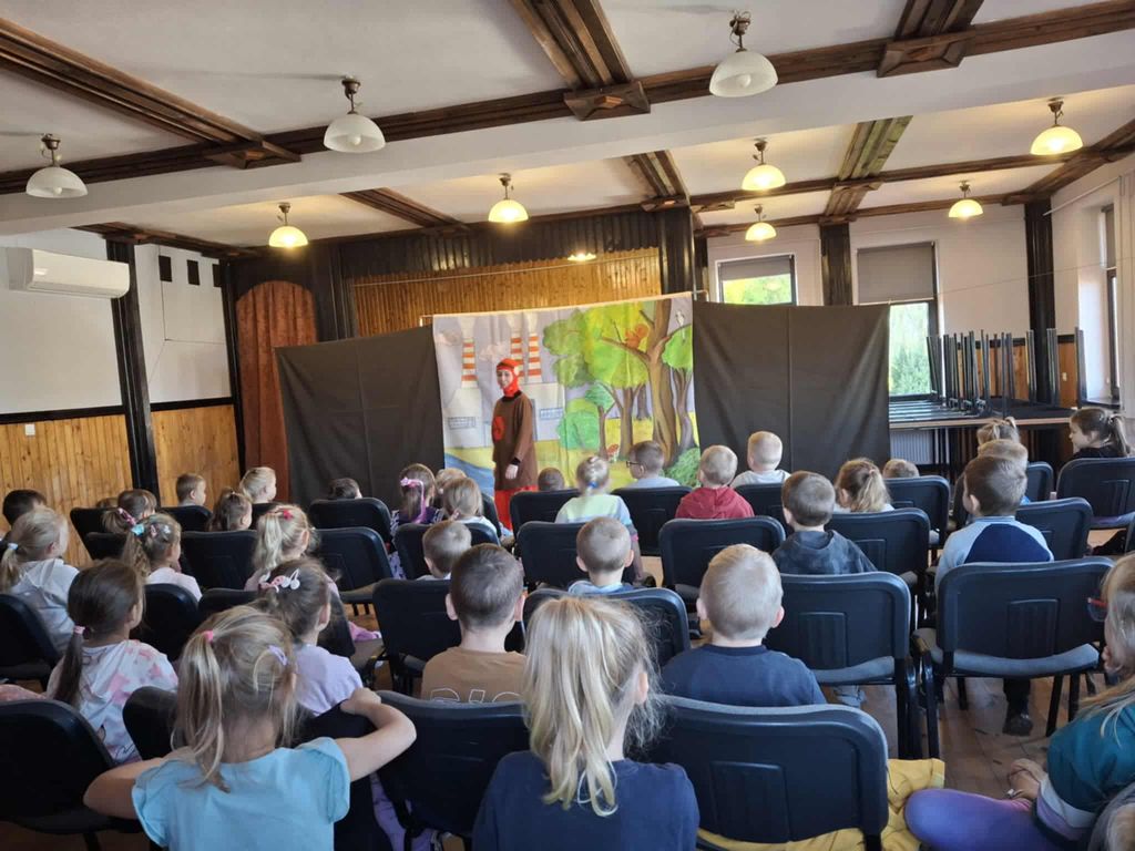 We wtorek 21 października 2025 roku gościliśmy aktorów Teatru Duet z Krakowa ze spektaklem teatralnym dla dzieci o tematyce proekologicznej pt. „Klimacik i Decybelek”. Na spektakl, który dotyczył ważnych zagadnień z zakresu ekologii, zaprosiliśmy oddziały przedszkolne ze Szkoły Podstawowej im. Janusza Korczaka w Rychlikach. Dzieci bardzo aktywnie uczestniczyły w przygotowanych dla nich wspólnych zabawach, a dużą frajdą była jazda na hulajnodze, sadzenie kwiatków czy przytulenie sarenki. Uczestnicy otrzymali dużą dawkę informacji o odpowiednim odżywianiu, o ty, co powoduje hałas, dlaczego trzeba dbać o nasze środowisko.