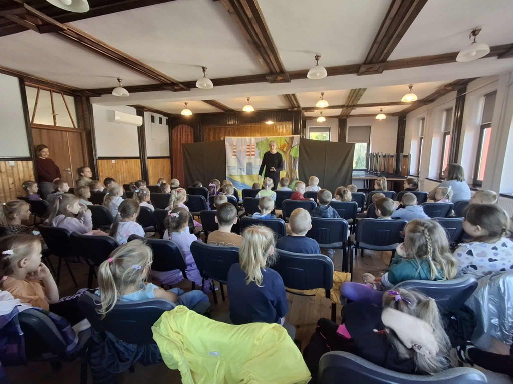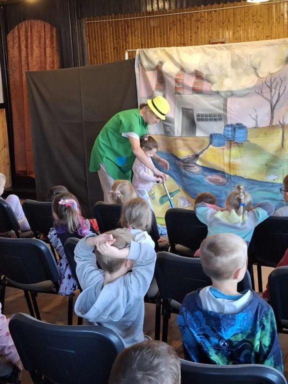 We wtorek 21 października 2025 roku gościliśmy aktorów Teatru Duet z Krakowa ze spektaklem teatralnym dla dzieci o tematyce proekologicznej pt. „Klimacik i Decybelek”. Na spektakl, który dotyczył ważnych zagadnień z zakresu ekologii, zaprosiliśmy oddziały przedszkolne ze Szkoły Podstawowej im. Janusza Korczaka w Rychlikach. Dzieci bardzo aktywnie uczestniczyły w przygotowanych dla nich wspólnych zabawach, a dużą frajdą była jazda na hulajnodze, sadzenie kwiatków czy przytulenie sarenki. Uczestnicy otrzymali dużą dawkę informacji o odpowiednim odżywianiu, o ty, co powoduje hałas, dlaczego trzeba dbać o nasze środowisko.